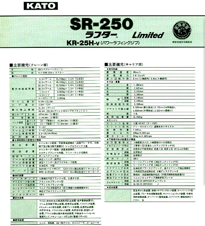 標題:KATO 加藤SR250Limited起重機性能表