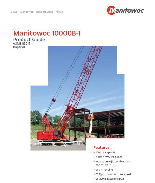 標題:馬尼托瓦克10000B-1履帶起重機性能表
